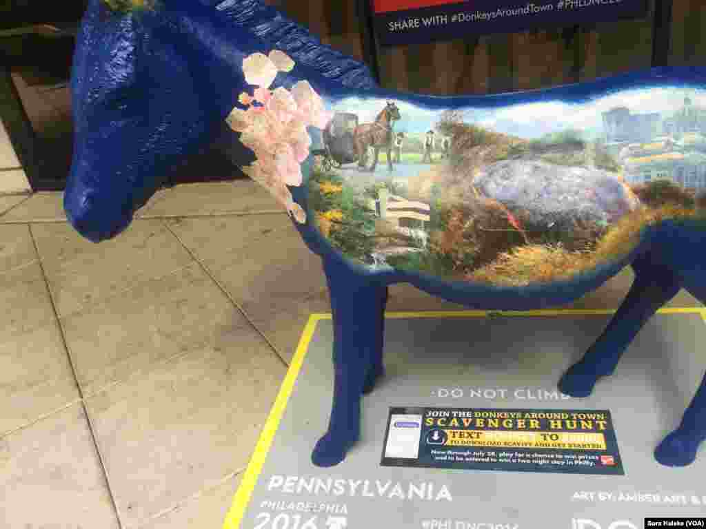 በ2016ቱ የዩናይትድ ስቴትስ ምርጫ ዴሞክራቲክ ፓርቲን ወክሎ የሚወዳደረውን እጩ ለመምረጥ ፓርቲው በፊላደልፍያ ፔንስልቨንያ ጉባዔ እያካሄደ ነው። ለጉባዔ ከቀረቡ ልዩ ልዩ ዝግጅቶች መካከል ከፕላስቲካ ቃጫ በተሠራ መስተዋት(Fiberglass) የተዘጋጁ 57 አህዮች ለእይታ አቅርቧል። የአህዮቹ ቁጥር ለ50ዎቹ የአሜሪካ ክፍለ-ግዛቶች እና ግዛቶቹን የሚወክሉ ናቸው። ጉባዔው ከተጠናቀቀ በኋላም የአህዮቹ ትእይንት እስከ ነሃሴ ወር እንደሚቀጥል ታውቋል።